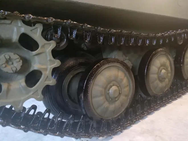 不仅底盘的整体布局变了,在第二版的911工程上,伏尔加格勒厂的设计师们给它引入了一套不同寻常的系统——轮履两用(他可不是克里斯蒂悬挂)