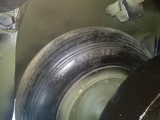 说回轮子,911工程的轮子很特别。他的轮子并不是为传统军用越野车设计的,而是从伊尔-14客机的起落架上面拆下来的。每个轮胎直径800mm,宽300mm,采用前轮驱动