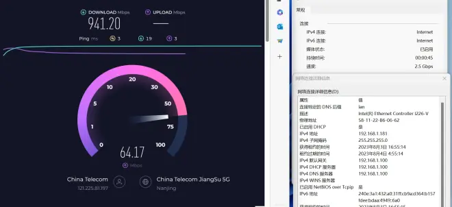 但是在无线模式下,如果你是多人合作边上传便下载的话,2.5G网口也没法跑满,这个就没有啥解决办法了,不过速度也不是不能接受。