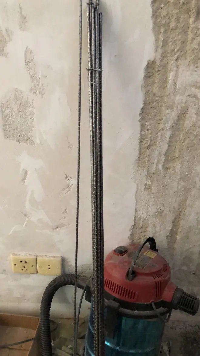 我买钢筋加固墙体,是因为自己第一次砌墙没经验怕出问题,其次主要还是想牢固一点,毕竟想在墙上承板,打螺丝的。作为填充墙中使用的钢筋,国标图集中宜选用GRB400级和HRB335级(热轧带肋的钢强度400和335MPa),也可采用HPB300级(热轧圆钢强度300MPa)。每120m厚墙体用不小于一根Φ 6的钢筋在纵横墙交接处设置拉筋,间隔400~500mm,非抗震时沿墙体每边500mm(这里实际改造操作过程中也遇到了尴尬)。我买的是10块一根6米Φ 6的,要的不多建材市场帮切的。