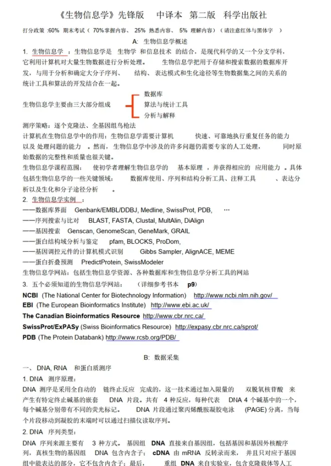 于是我收集好了整套的生物信息学的期末复习资料,来帮助你复习备考,摆脱这些焦虑,轻松度过期末考试