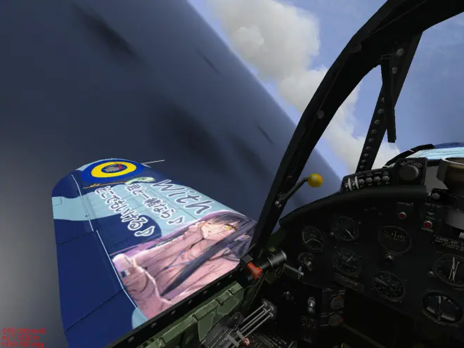 接下来是C号机(鸥萌航空.ver)。C号机的涂装是“鸥洲快车”AKM-8656的联动涂装,因此主要的色调与AKM-8656一样,垂尾也一样将鸥萌标志整个放上去了。同时翼尖也有鸥萌颜色的条纹,但因为F4U没有翼尖小翼,就放翼尖上了。之后突然联想到现实中同样使用条纹作为机徽的一个装备F4U的国家,洪都拉斯空军,于是为了捏他洪都拉斯空军于是把机鼻涂成了深灰色。主翼痛使用了“三角形的秘密”的那张鸥,也因为如此,这架飞机痛上了“三角形的秘密”本身——巴林奇的形象,效果是相当的骚气。右翼痛则是我们都很熟悉的叼着百奇的鸥,因为AKM-8656的内饰用了,因此本机也使用了。值得一提的是,本机利用了襟翼镜像的问题,在襟翼上贴上了来自UI上的蝴蝶,效果还行。引擎侧面,左侧是七影蝶logo与“サマポケ”,这个位置放Logo是为了致敬在2018年……还是2019年初?在日推有键子将七影蝶Logo贴到了《战争雷霆》的同型机上(印象里是F4U,不过也可能是F6F“地狱猫”,没有保存当时的截图,记不清了,总之就是在我之前就有人在战斗机上贴SP相关了)。这个布局是为了致敬此人,基于战斗机做SP痛机的先驱者(虽然严格来说并非真正意义上的痛机)。右侧则是“东风视艺”。机身的飞机与AKM-8656一样,灵感来自鸥的行李箱上的“Flight -KINKI AIR-”贴纸。机身痛采用了带背景的以前宣传时的推特SD图,这个曾经被用于AKM-8656的原案CZ-8656,但因为《X-Plane》的贴图分辨率显著提高,这个就用不上了,于是用在了本机上。之后就是巴林奇的形象。Summer Pockets印在了机翼下部的两侧,七影蝶logo放在了散热器附近。同时还印着鸥萌航空的宣传语“承载约定,飞跃七海”。C号机注册编号为AKM-4317,这个两个数字来自鸥的体重与SP故事开始时的鸥的年龄。