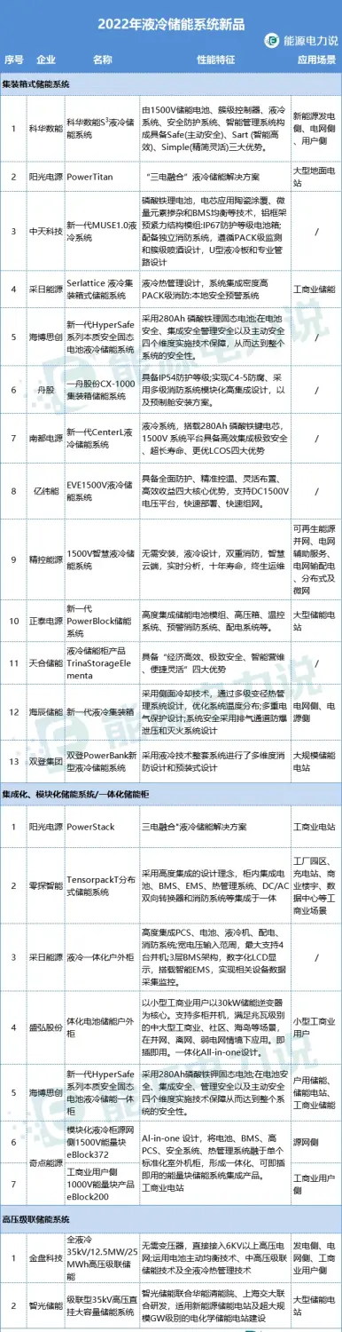 据公开信息统计,科华数能、阳光电源、亿纬锂能、采日能源、星云时代、海博思创、海辰储能、中天科技、上海电气国轩、天合储能、阿诗特、盛弘股份等数十家厂商等厂商跟进液冷趋势,发布的新品均涉及液冷技术,涵盖了电网级、工商业和户用储能等多种场景。