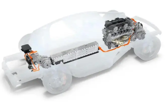 电池长155厘米,高30.1厘米,宽24厘米,总容量为3.8度,纯电模式可以行驶10公里,充电可以用普通家用交流电和充电桩,充电功率7 kW,充电时间为30分钟,行驶时通过动能回收充电,也可以用V12充电,仅需6分钟就可以充满。
