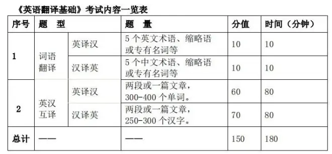 包括二个部分:词语翻译和英汉互译。总分 150 分。