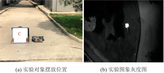 实验示意图如图1所示(a)所示,其中A到D依次为浅色伪装板、深色伪装板、漫反射白板、迷彩雨衣。实验过程中获得的高光谱图像灰度图如图1(b)所示。