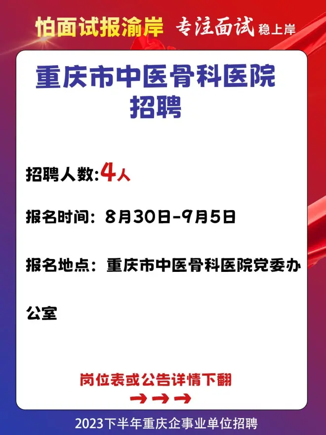 重庆医院招聘!重庆市中医骨科医院招4人