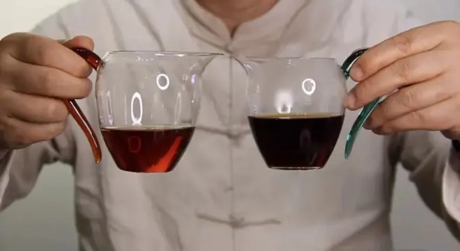 如果品茶者喜欢浓一些的茶汤,当淡色的茶汤出尽时,逐渐可以看到深色的茶汤出来。