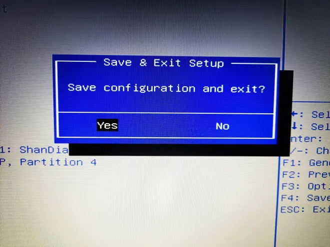 3.然后按键盘方向键右键【-->】,选择【Save Change and Exit】,选择【YES】,重新启动电脑。