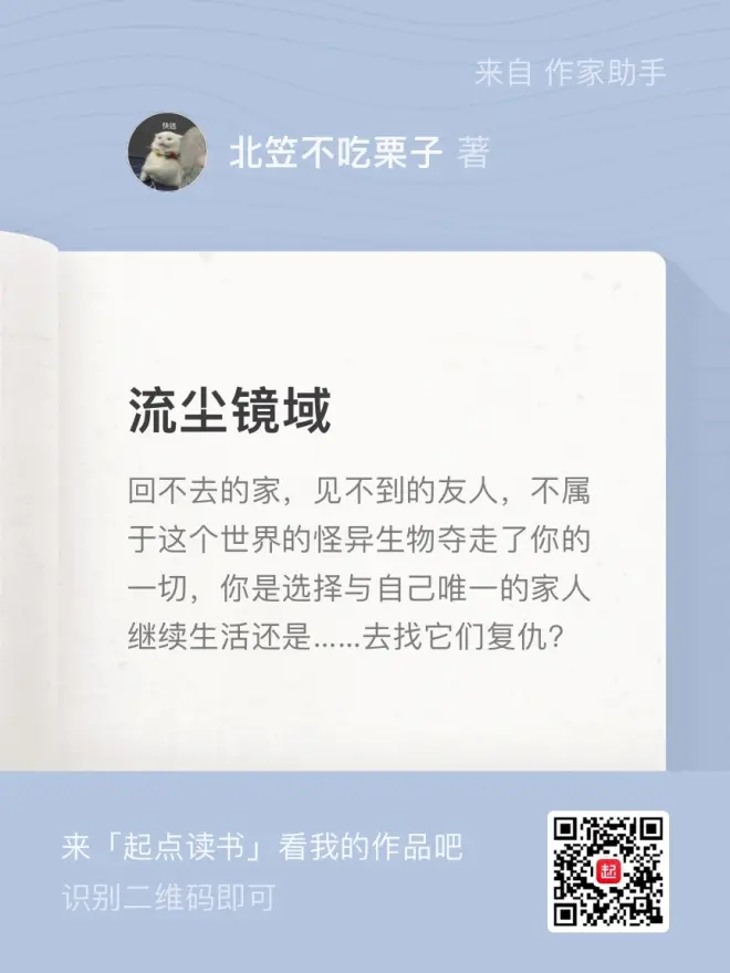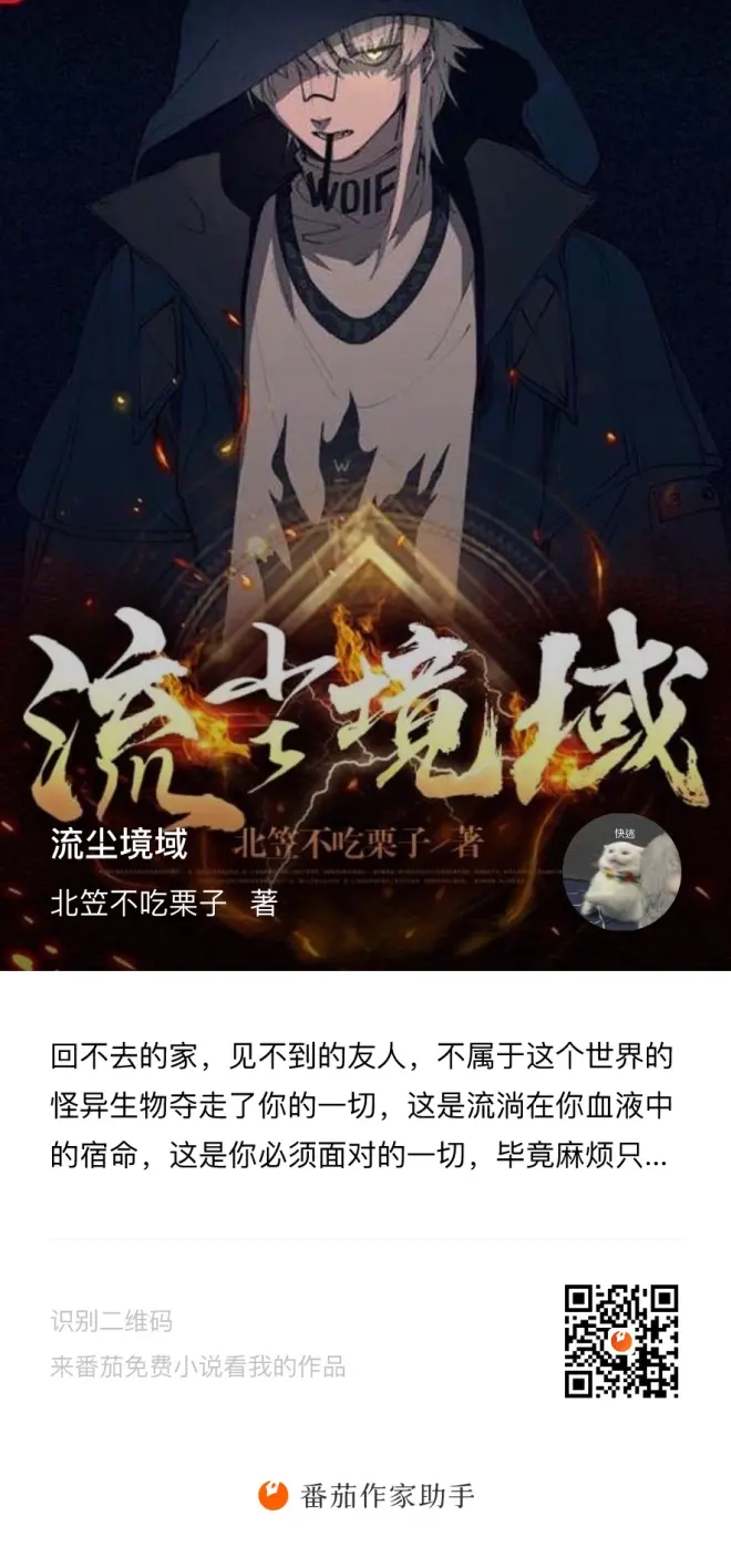 和各位郑重的介绍,本栗子成为了一个兴趣使然的网文作者,创造出了一本兴趣使然的网文,在此欢迎着每一个兴趣使然的读者们前来观看,书名为《流尘境域》目前在番茄、起点平台上架,各位喜欢的话就多多支持,当然,本人还是会在这边时不时更新第五视频,up目前是个大学生,小说和视频的更新速度都很难保证,要是喜欢也谅各位见解。