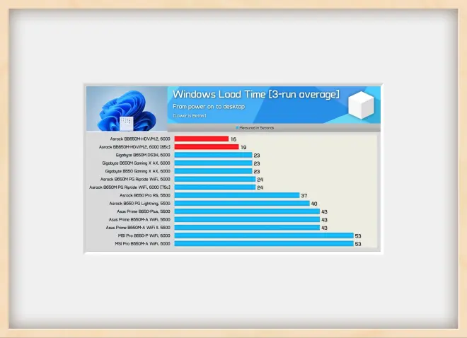 华硕 ROG X670E HERO 虽然通过 BIOS 更新大幅缩短了开机时间,但是根据 Hardware Unboxed YouTube 频道制作的表格来看,开机速度并不是特别快。