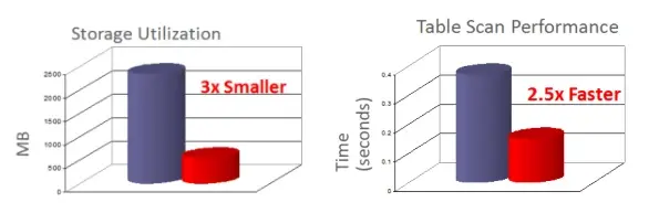 但是,如果启用了列式压缩, 那么压缩比是所有数据库中最大的, 而且某些数据库还可以只针对特定的列进行压缩, 灵活性又有了更大的提高。