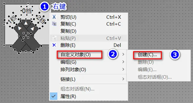 选择所有对象,然后鼠标点击右键,选择“自定义对象”下的“创建”来创建一个自定义对象。