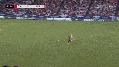 上半场,梅西在阿尔巴的助攻下为迈阿密国际取得领先,但随后达拉斯FC连续进两球反超比分。下半场,达拉斯FC再进一球,但科雷马斯基随后为迈阿密国际追回一球,紧接着泰勒打进乌龙球,而梅西也制造了一粒乌龙球。第84分钟,梅西的任意球绝平比分。这场比赛是梅西连续4场为迈阿密国际进球,他7球的总进球数打破了6项纪录,同时也创造了足坛新纪录,连续17年至少打进20球。