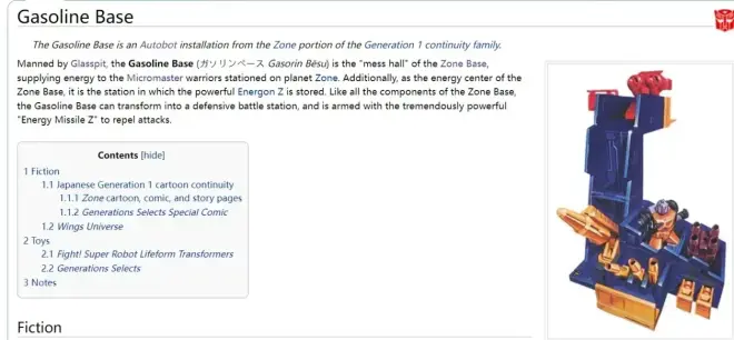 加油站点基地\加油站基地\燃油基地Gasoline Base是G1连续性族系宇宙Generation 1 continuity family微型地带Zone部分汽车人Autobot赛博坦(博派)Cybertron设置