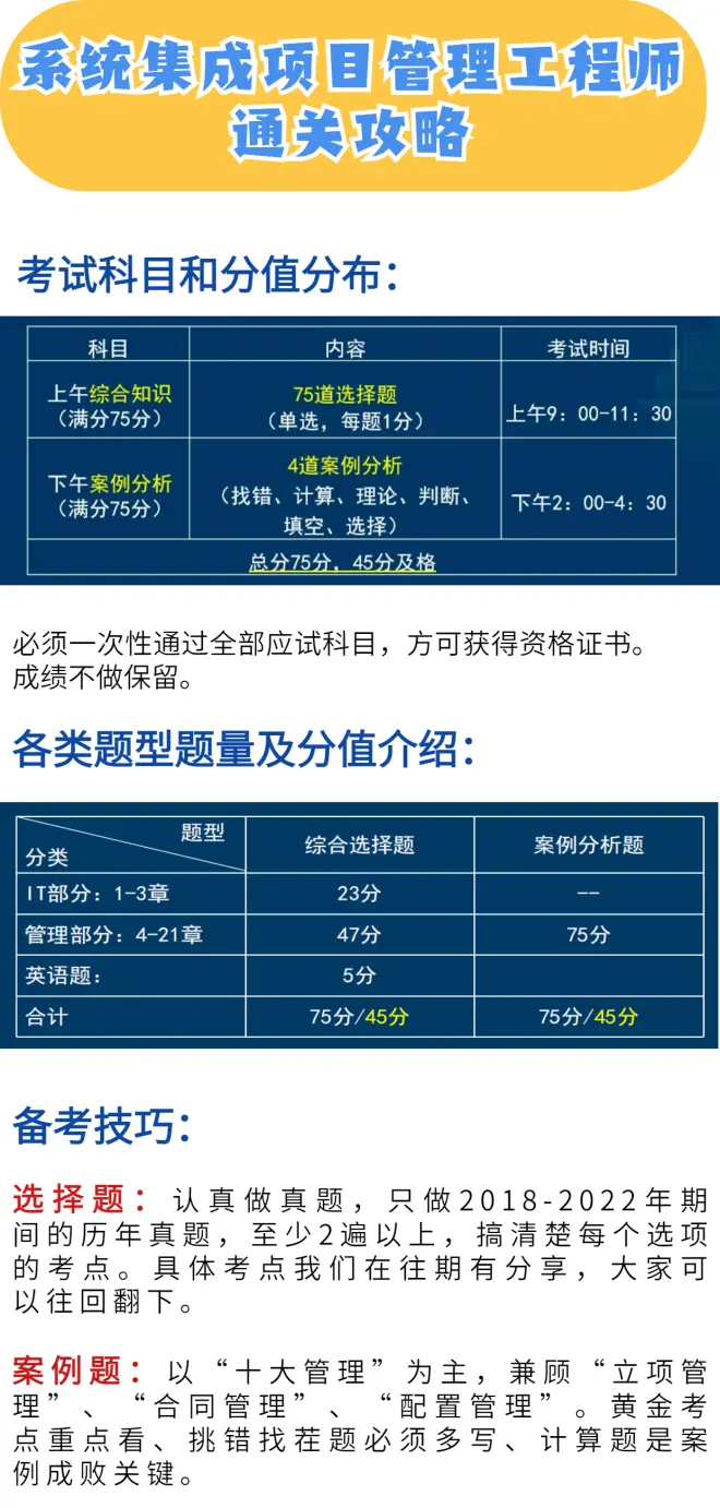 而系统集成项目管理工程师,只考两个科目:基础知识和案例分析。
