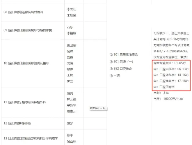 该校口腔医学学术学位则只有口腔生物学、口腔生物材料学、口腔生物理学/修复工艺学,3个方向。