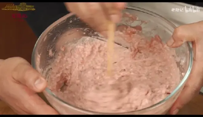 酥馅:肉馅中加入25g化开的猪油搅拌