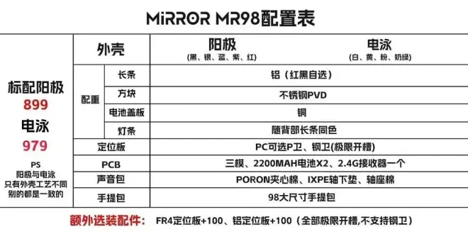 定位板:标配极限开槽FR4/pc/pom/铜定(支持p卫+钢卫)