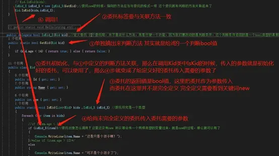 利用委托将方法中判断的部分摘出来,写成一个新的方法,与委托关联,那么可以在不动主体代码的条件下,去改动判断条件。