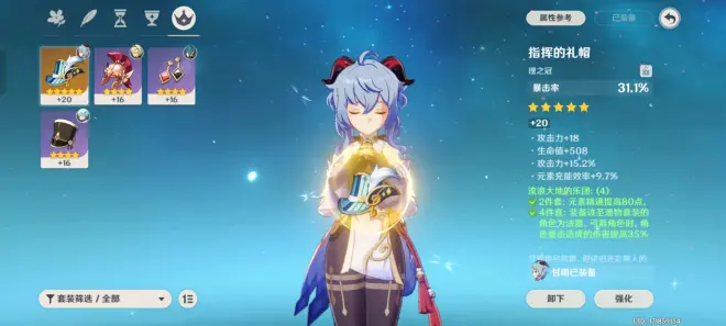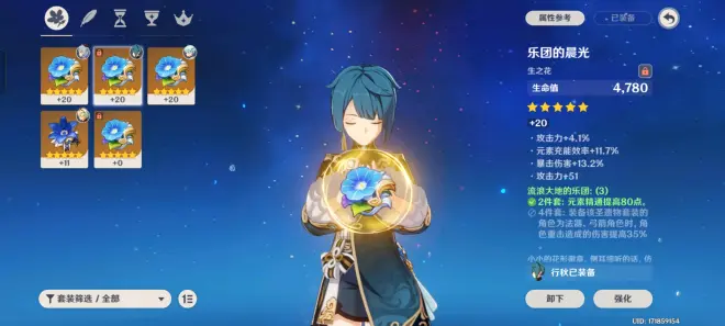 » 阿洛(不叫洛天)的原神角色目前所携带的圣遗物