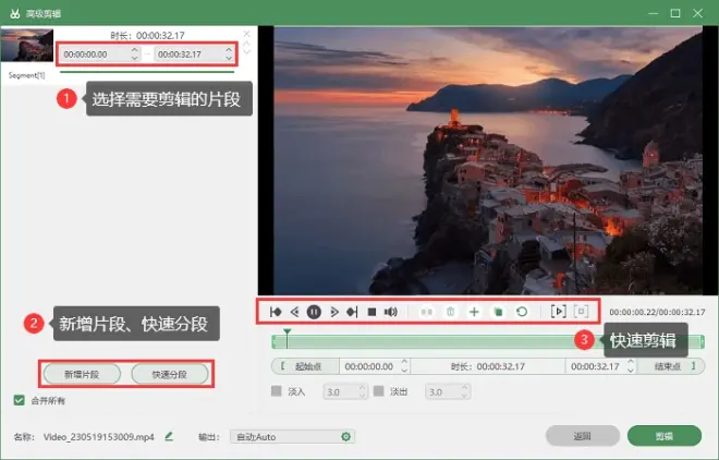 步骤4:录屏结束后,还可以直接在此软件的【高级剪辑】页面剪辑视频。