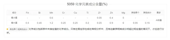 5059铝合金可进行O、T6等状态的热处理,T6状态下强度最高,但韧性较差。5059铝合金经过T6状态的热处理,硬度可达110~130HB。