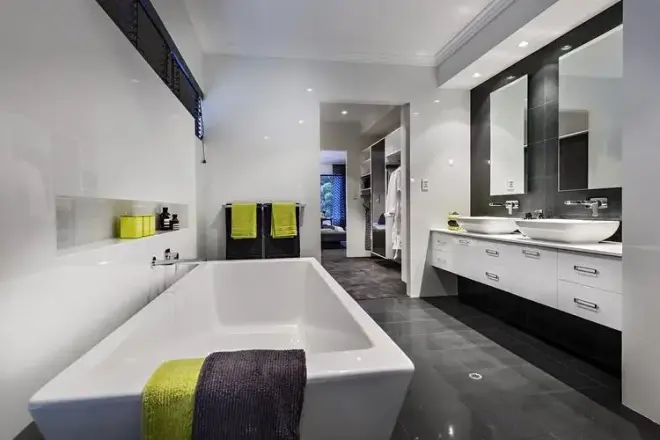 其中卫浴装修中不能够少的有:马桶、水龙头,浴缸、淋浴房、台盆或是整体浴室柜以及卫浴挂件等等。