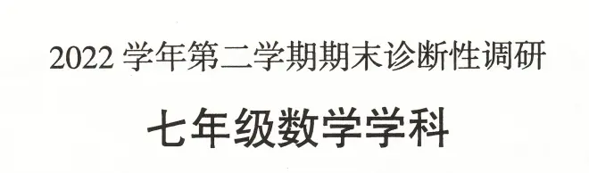 其中,“2022学年第二学期期末诊断性调研”一行字中,数字为Times New Roman,汉字为方正书宋简体。学科名(“七年级数学学科”)字体为方正黑体简体。