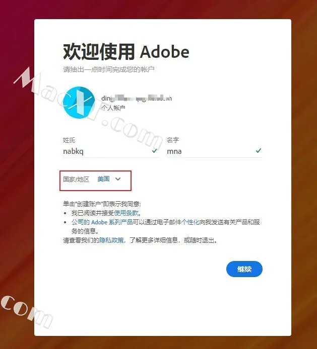 5地区选择美国地址,年龄可选择20+