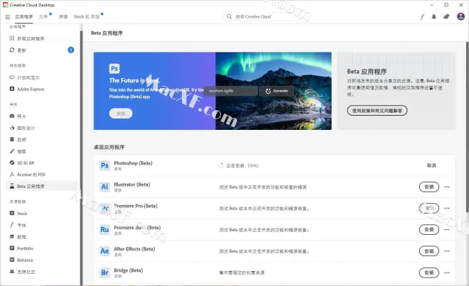6登录好账号,在Beta 应用程序,点击安装Photoshop (Beta)