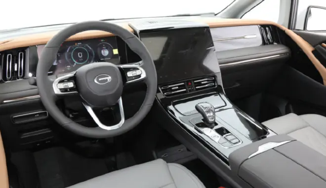2024款传祺M8大师的内饰同样也做了一定的改动,内部以平直线条为主,并将提供月下紫禁和罗马假日两种内饰风格,挡把也是全新的造型,整体比现款更时尚。其中,14.6英寸中控屏与换挡面板、中央扶手连成了一个整体,进一步满足了当下用户对科技感的追求。中控屏内置的是ADiGO车机系统,搭载了8155芯片,交互流畅,且娱乐功能丰富。同时,新车还支持L2级辅助驾驶功能,具备AR导航、540°高清全景影像等功能,符合主流消费者对智能化的需求。