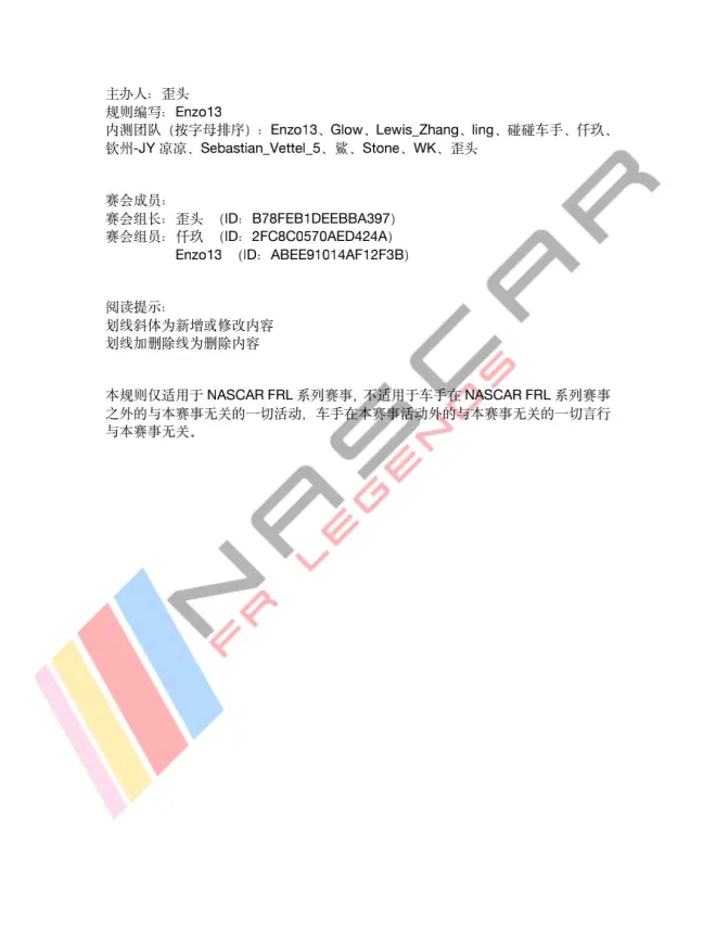 【NASCAR FRL】内部赛规则V1.10的评论 (共