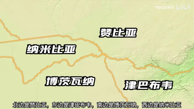 4、四国边界线在一起,接壤的博茨瓦纳与赞比压亚仅有150米