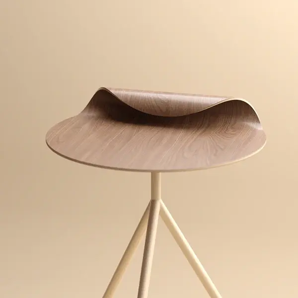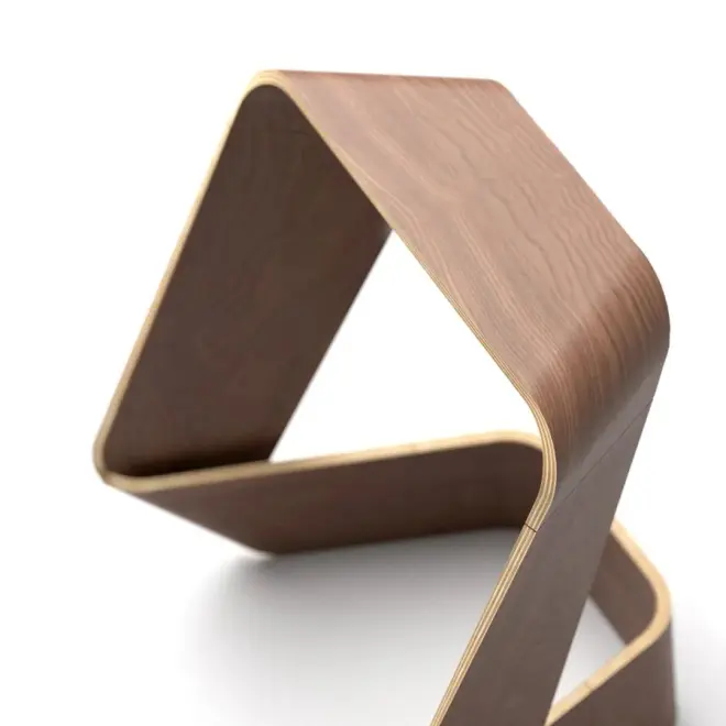 由一块看似无限长的胶合板塑造,以连续的扭曲线条形式呈现座区和底座支撑。实际上,它由四个弯曲的胶合板元素制成,通过传统的木工连接方式连接。
