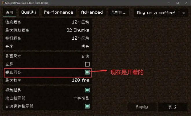 方法:选项-视频设置-垂直同步(空心就是关闭了)