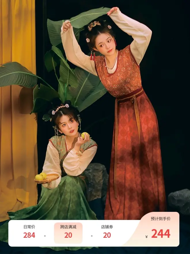 第一套这种雪纺风卖三百多要是几年前了,现在的话很难卖出去,不加点刺绣拍的不够仙很难有人买账。
