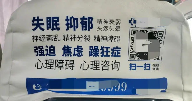 最近几年坐大巴,我发现,不孕不育广告几乎绝迹,但有一类广告占比逐渐扩大了,那就是抑郁症、精神科的医院广告