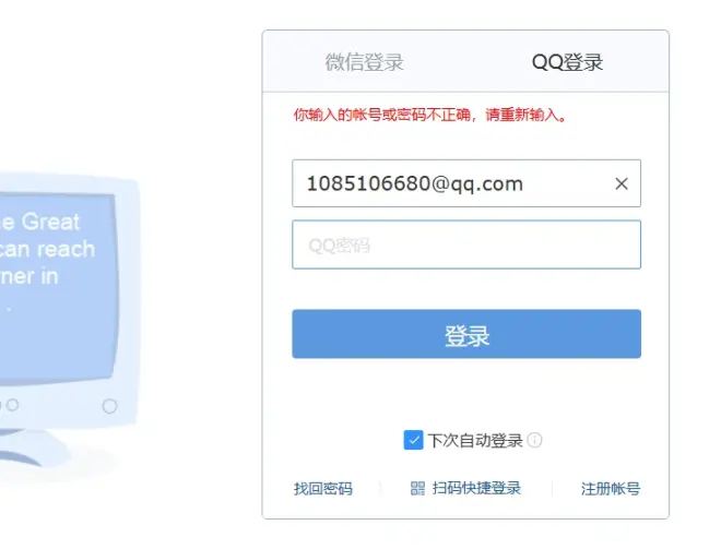 密码错误 现在不知道是被人 盗了 还是 号主改密码了