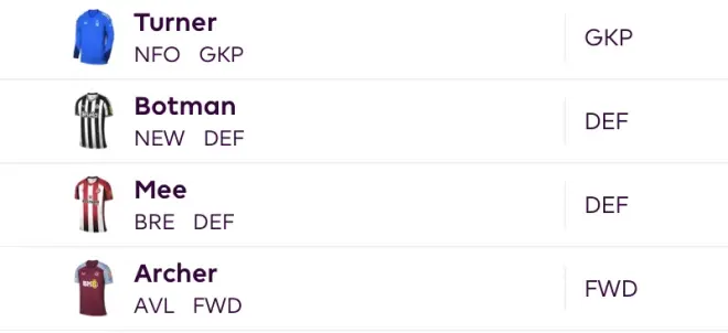 上赛季表现出色的曼城中卫阿克、纽卡中场攻击手阿尔米隆都被我纳入阵中。