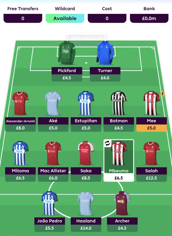 上赛季表现优异的布伦特福德中卫本·米不幸首轮遭遇伤病,似乎不算严重,但也让我很难对防线做过多调整,继续保持攻强守弱。WK2我应该还是会继续信任阿诺德。