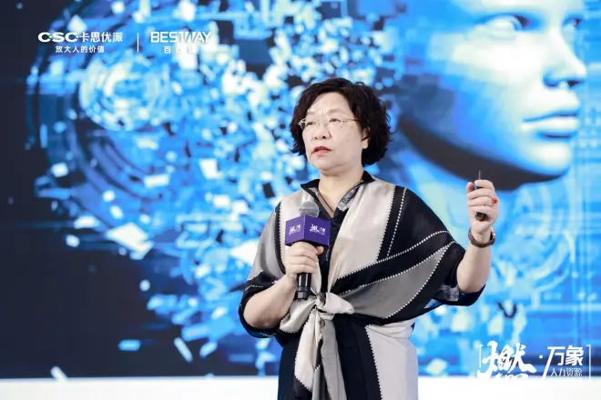 中国劳动经济学会职业开发研究会会长周文霞在演讲中探讨了“人力资源从业者的成长之道”。她先是强调科技对这个时代的重要性,分析了不同因素对人力资源行业发展的影响。在展望人力资源领域的未来的同时提出多维度的职业成功观,强调持续学习的重要性,并呼吁人力资源从业者注重可持续发展,为行业和个人的繁荣创造价值。