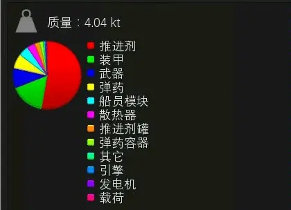 Delta-v:4.54km/s 💧推进剂类型:甲烷 推进器:2× 6.19km/s 甲烷 矢量核热火箭 推进剂罐: 💧1× 50.0 t 氟 罐 2× 12.7 MW 氟 自动加油机 💧4× 300 t 甲烷 罐 💧3× 300 t 甲烷 罐 2× 13.2 MW 甲烷 自动加油机 加速度:208 mg 空载加速度:432 mg 总可燃烧时间:21分44秒 转向耗时:19.5秒 翻滚耗时:16.4秒 质量比:2.08 湿质量:4.04kt 干质量:1.94kt