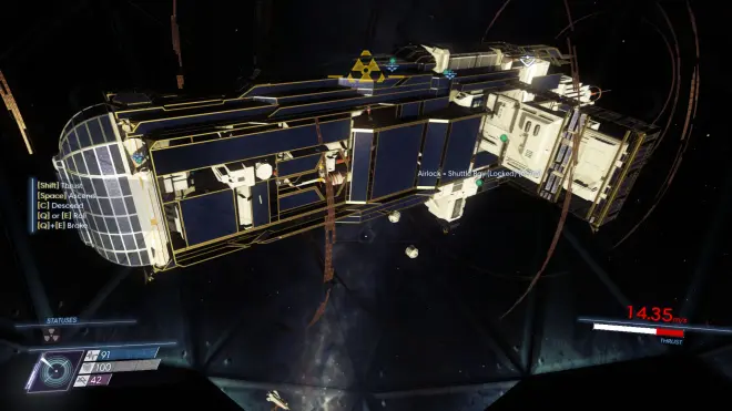 反差效果在另一款近年的太空题材恐怖游戏《掠食》中有着进一步的奇妙诠释。《掠食》继承了沉浸式模拟游戏的优良传统,交互机制和游戏内容结合的恰到好处。相比于《死亡空间》的幽闭空间感,《掠食》尝试在黑暗宇宙中寻找答案。太空站外的部分是本作最令我惊艳的地方,渺小生命借助科技在深邃宇宙中孤独飘荡的过程瞬间俘获了我的心灵。广袤和渺小的极大反差,已知和未知的极大对比,在彰显人类探索宇宙的伟大的同时,更将宇宙的压迫力和未知感描绘地淋漓尽致, 充分传达了何为生命的稍纵即逝,何为科技的微薄黯然!