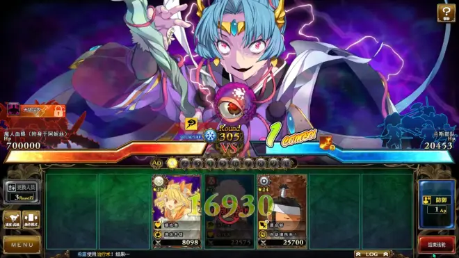 先停手,这时候我们需要先做下进形态3的准备,因为形态3一上来就会来一发黑色破坏光线,不防御的话太痛,防御的话少了的4点ap会破坏4回合回血的循环,而且兰斯也会没ap输出,可以说是生存输出两难