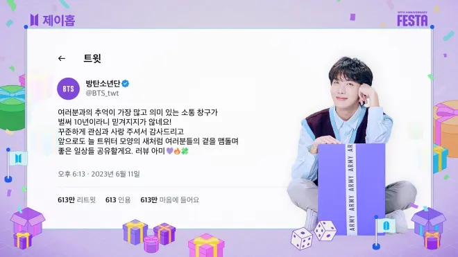 항상 함께해준 고마운 아미들에게 트윗을 쓴다면?