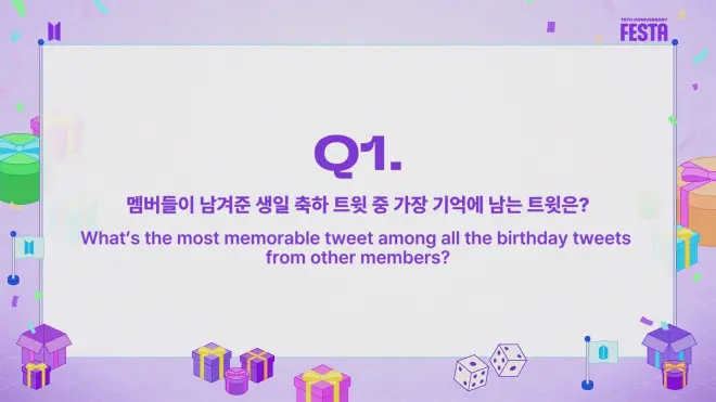 Q1. 멤버들이 남겨준 생일 축하트윗 중 가장 기억에 남는 트윗은?