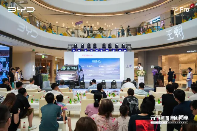比亚迪元Pro 2023款天津区域上市发布会于6月24日在天津梅江环宇城燃情落幕。主题为“元气满满 自由畅享”的活动吸引了厂家领导、车主和媒体大咖共同见证这一重要时刻。