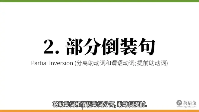 上图话语补充:置于句首时,需要完全倒装,举例如下