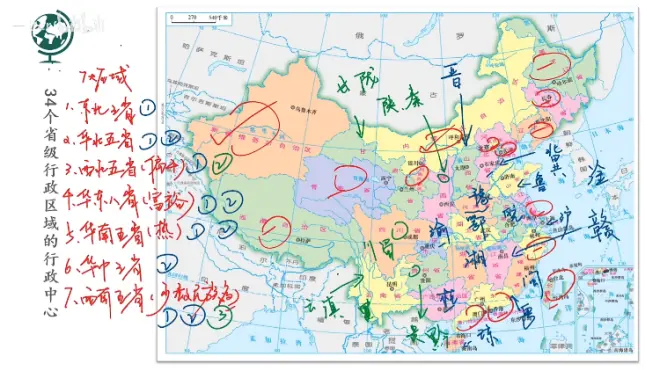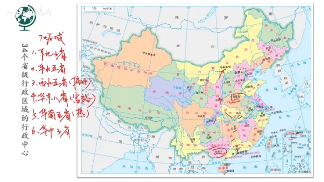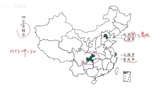 注意:34个省级行政单位不一定叫“××省”,其中有二十三个叫“××省” e.g.黑龙江省,吉林省,辽宁省等等